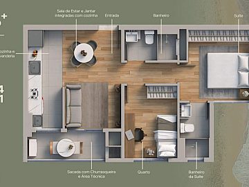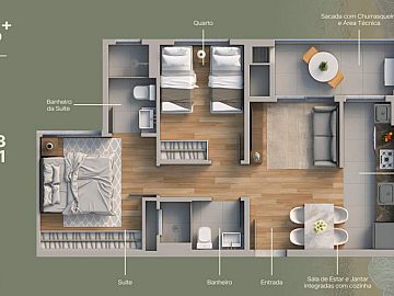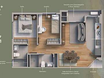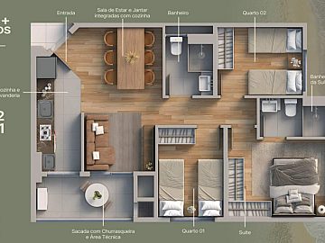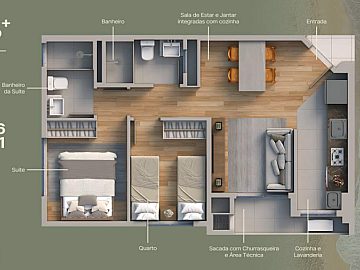 * Conforto e Praticidade: Desfrute de água quente em todas as torneiras, área de serviço funcional, sacada com churrasqueira para momentos de descontração e garagem para sua comodidade.